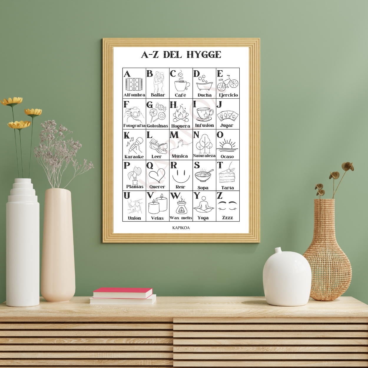 Ilustración con el abecedario del hygge.