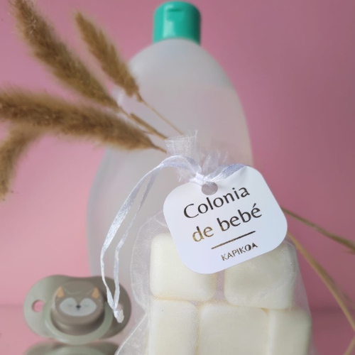 Nuestros ambientadores de armario se presentan en bolsitas de organza de color blanco, y dentro llevan cubitos de cera perfumada.